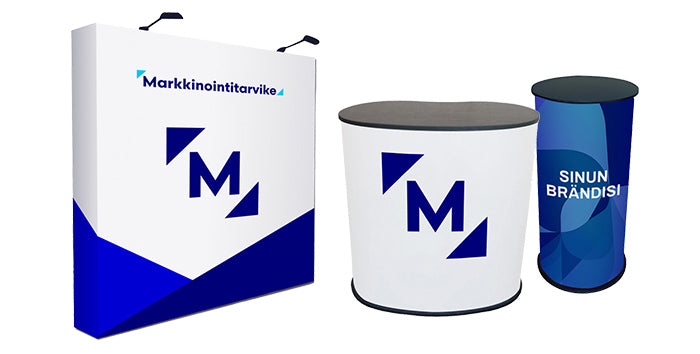 Pop up - messuseinä 2.25 x 2.25 m suora, nopea kasata. mainosseinä